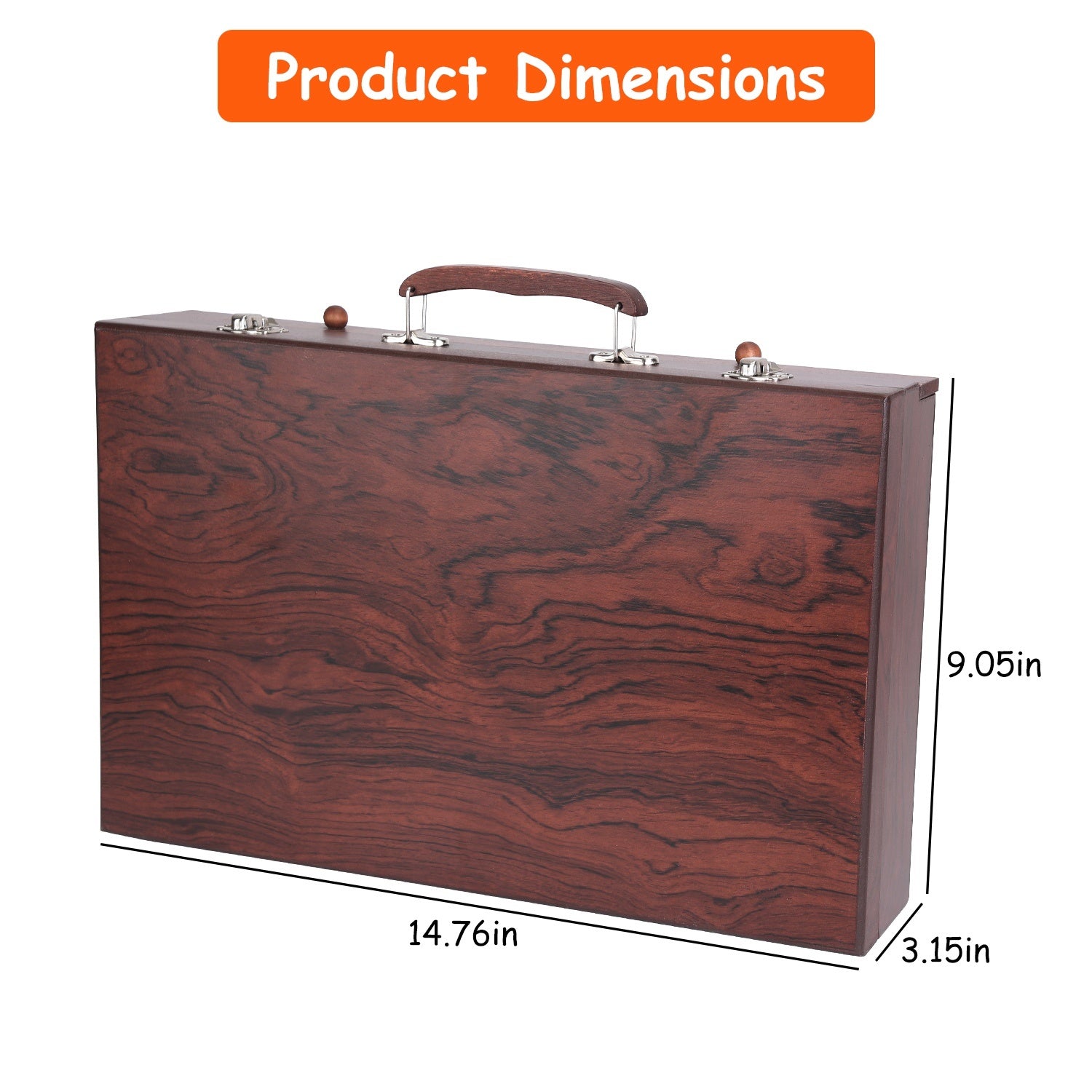- *Well-Packed in Wooden Box*: All the drawing supplies are neatly placed in the sturdy and exquisite wooden case with removable drawer,providing you with convenient storage,portable carry and easy access. Hold the ergonomic wooden handle and take our art painting kits for travel,school,field sketch.