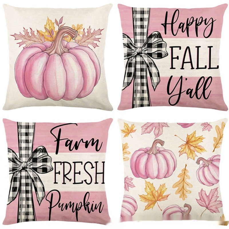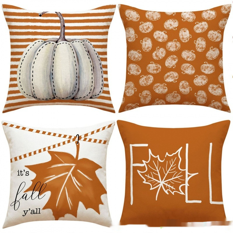 4-Piece Printed Linen Throw Pillowcase Set, Autumn Pumpkin Decor