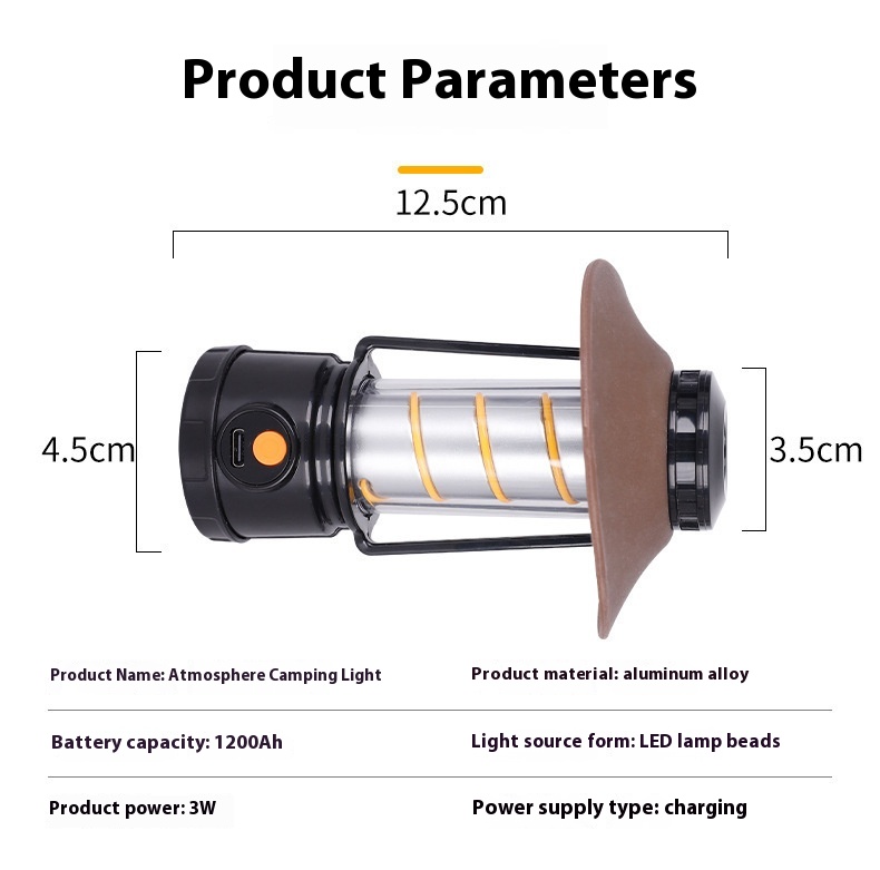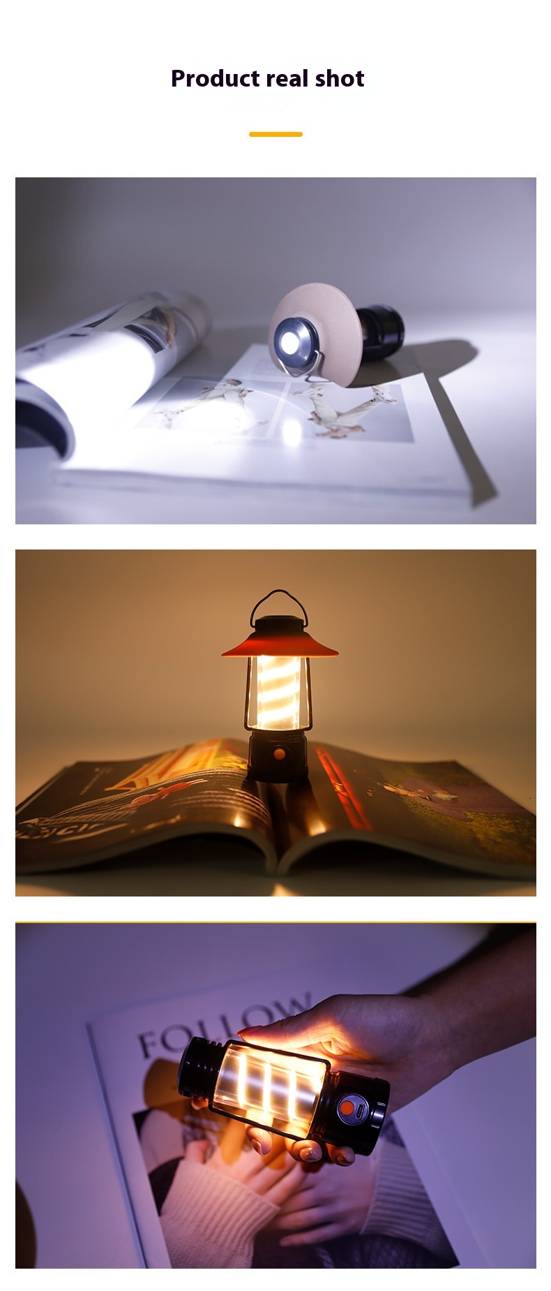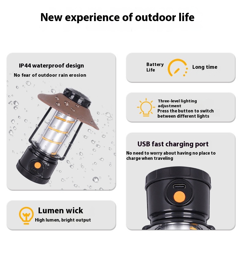 Camping Lamp Outdoor Portable LED Tent Light, Rechargeable Flashlight for Yard, Hiking & Emergency Use