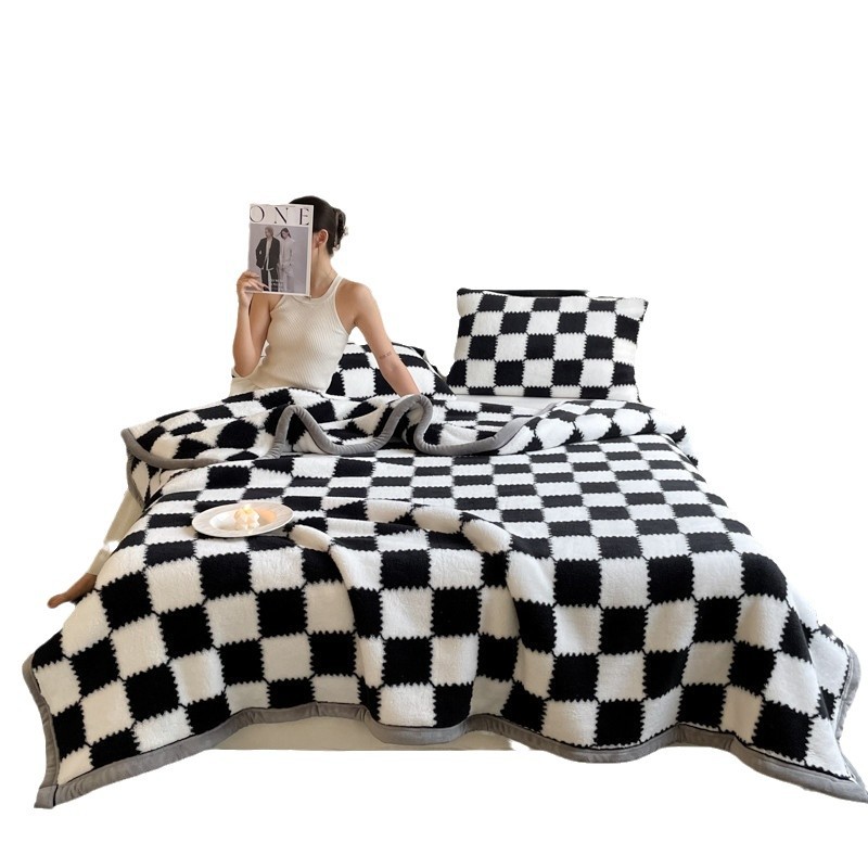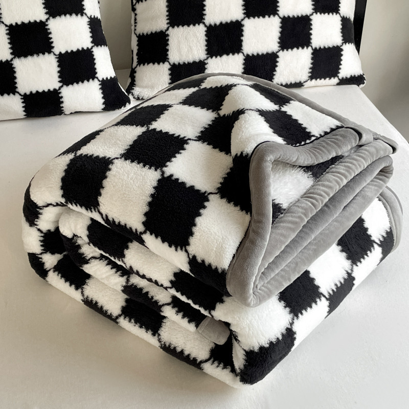 Cozy Shu Velvet Blanket with Chessboard Plaid, Soft Plush All-Season Throw