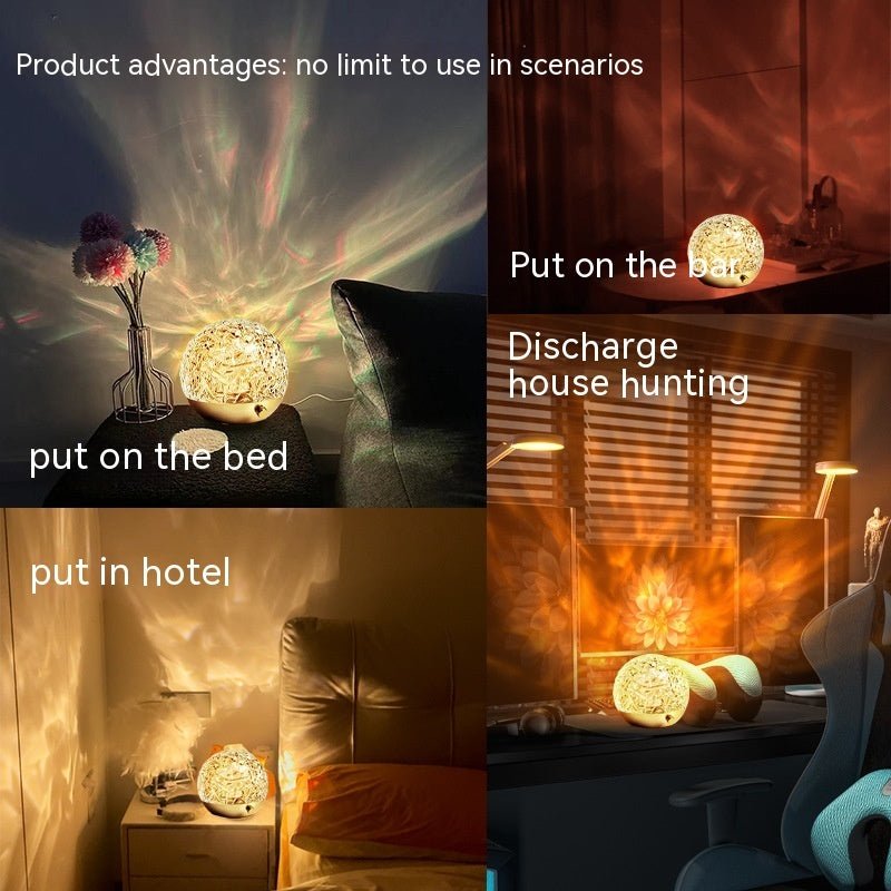 Crystal Water Ripple Projector Night Light, Mood Lamp for Bedroom & Home Aesthetic Decoration, Bedside Christmas Gift