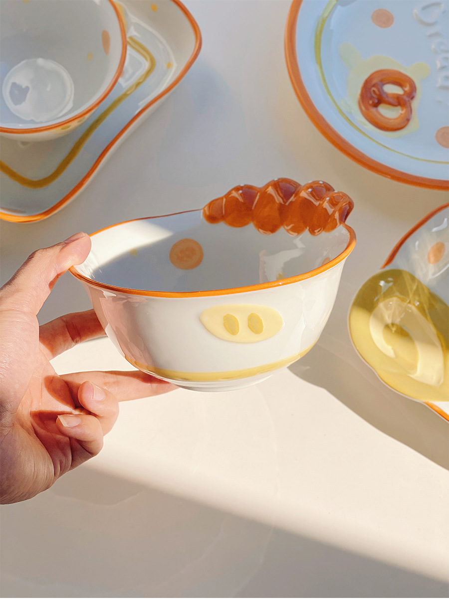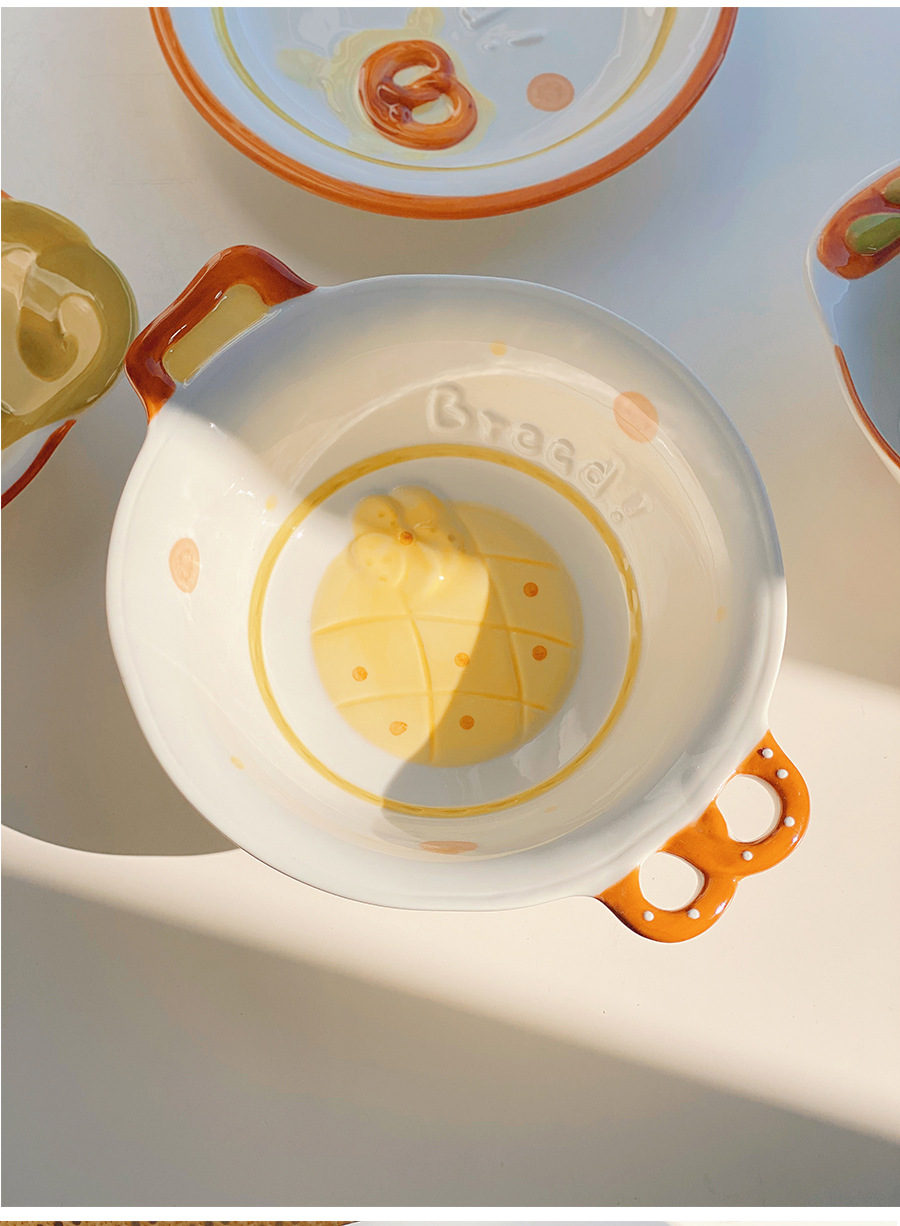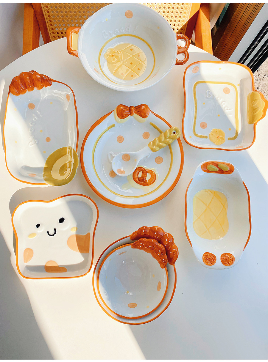 Cute Bread Ceramic Tableware Dish – Individual Bowl or Plate for Snacks & Desserts