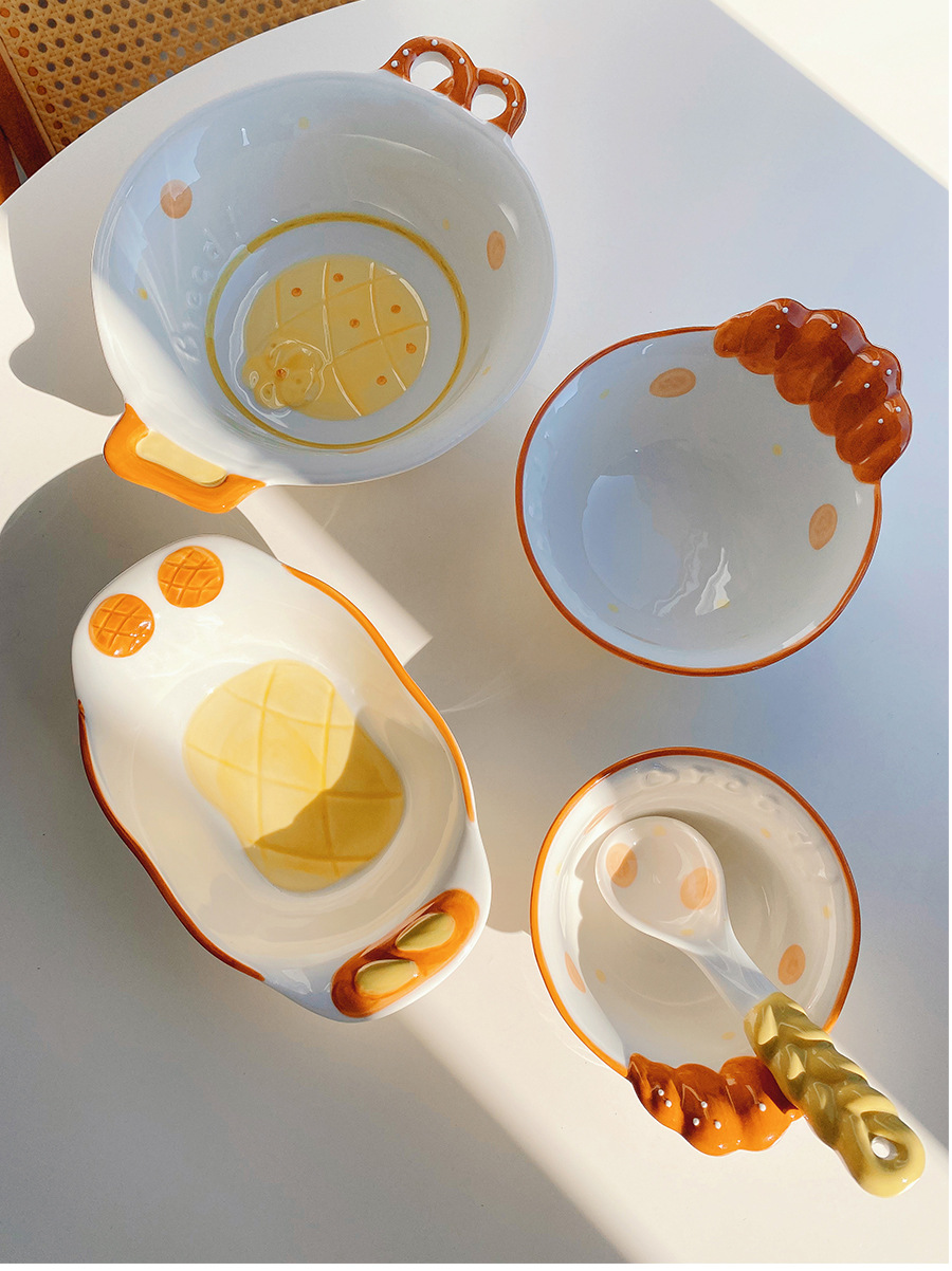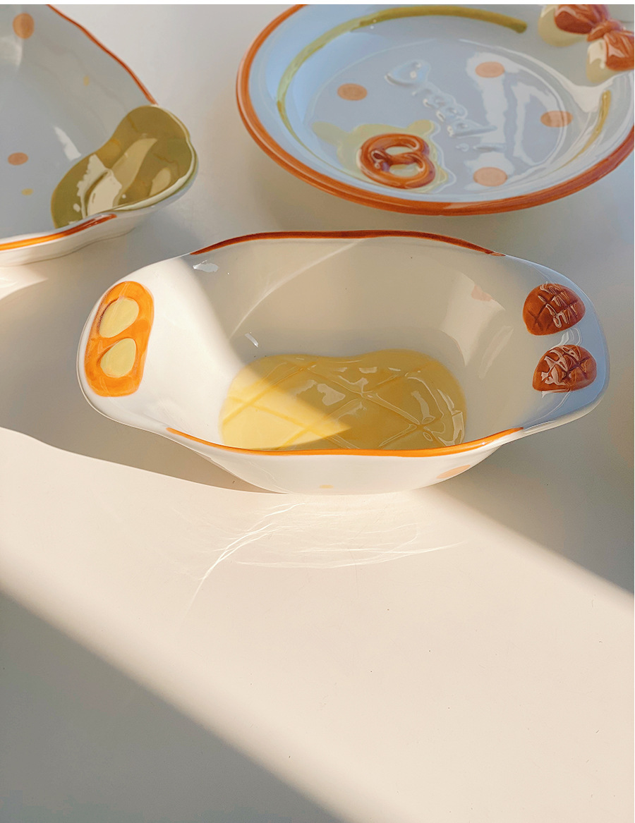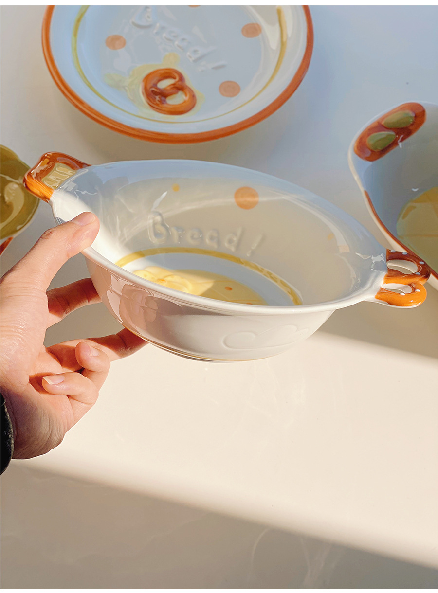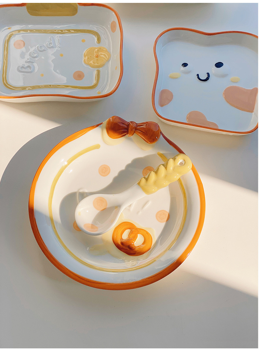 Cute Bread Ceramic Tableware Dish – Individual Bowl or Plate for Snacks & Desserts