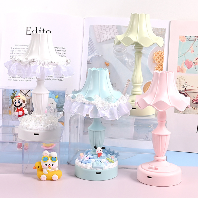 Cute Cream Retro Style Table Lamp, Decorative Bedside Lighting for Bedroom & Living Room
