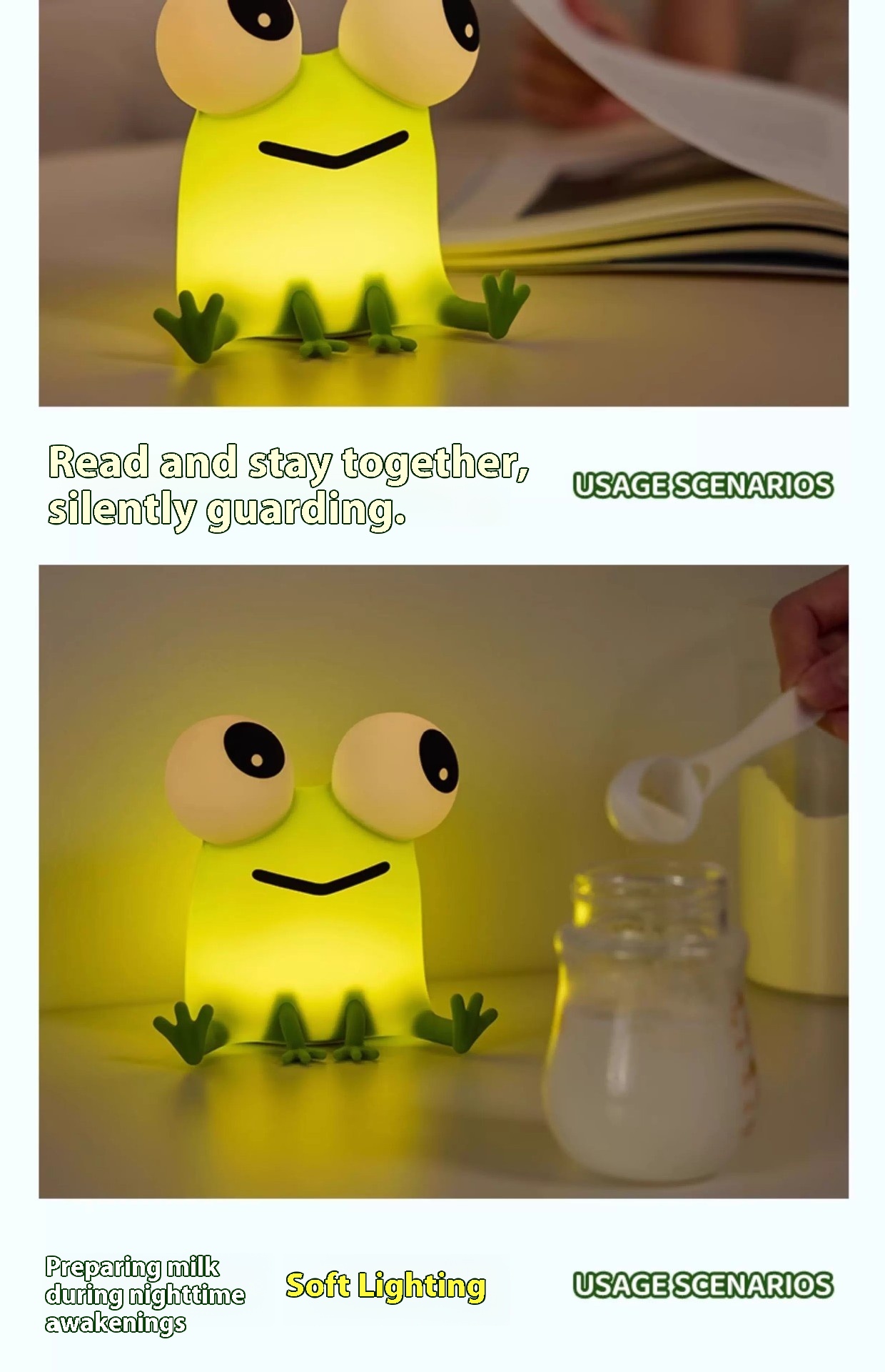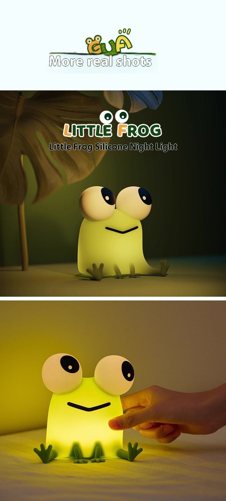 Cute Frog Silicone Night Light, Rechargeable Kids Bedside Lamp & Stress Relief Gift