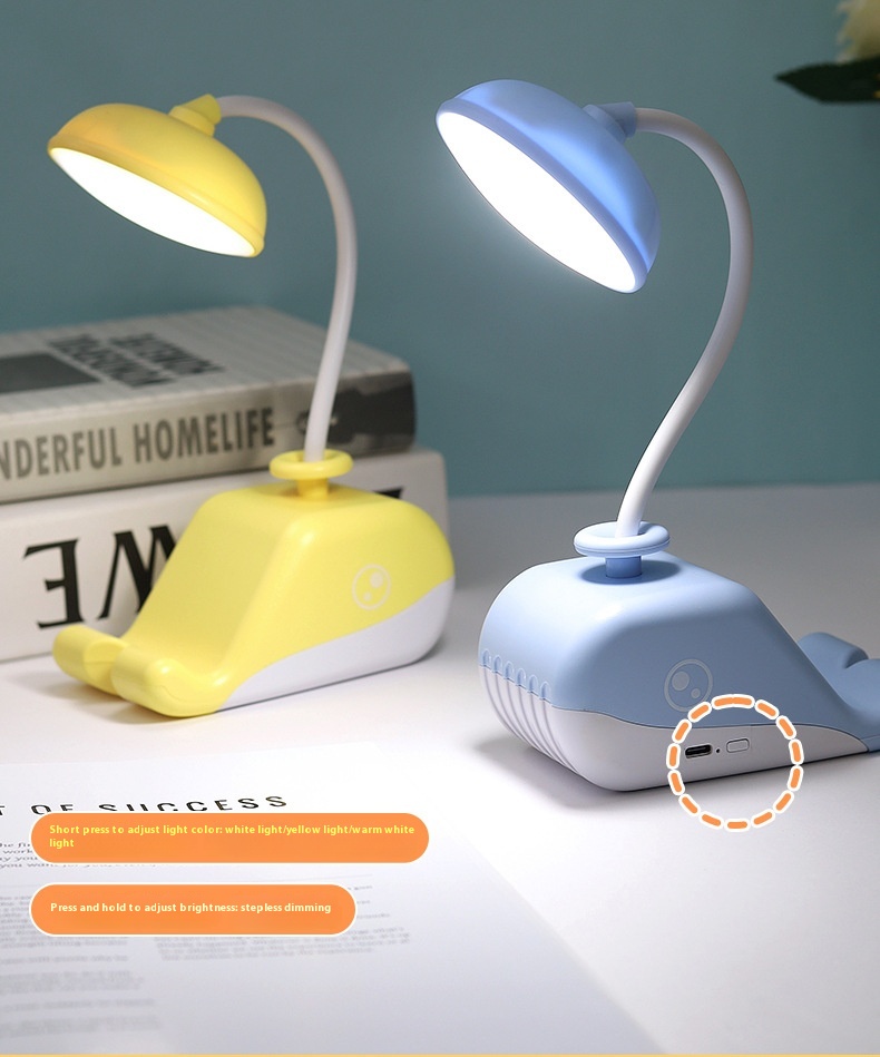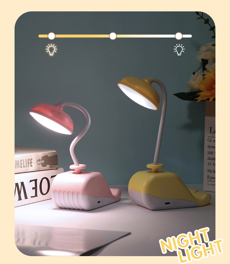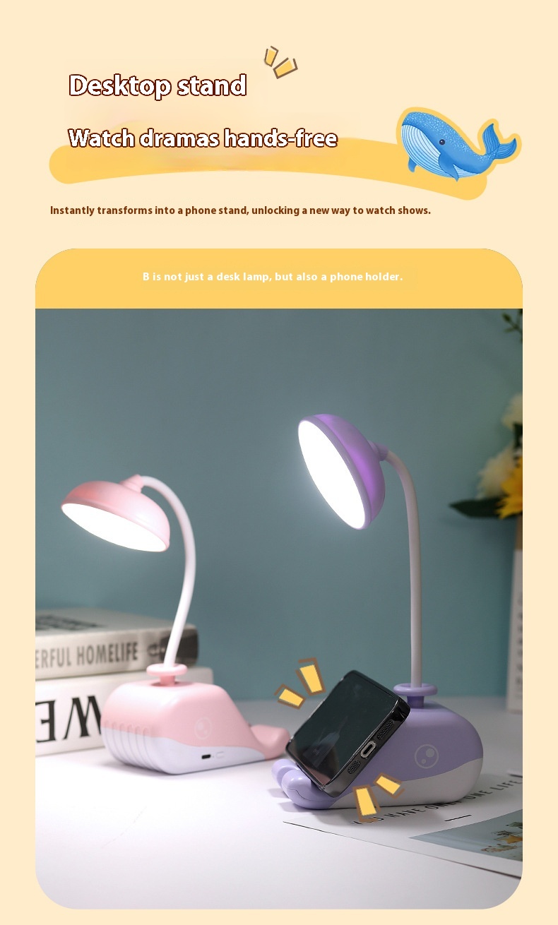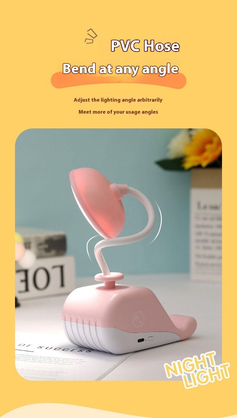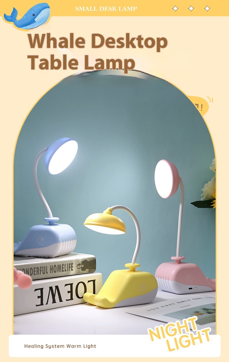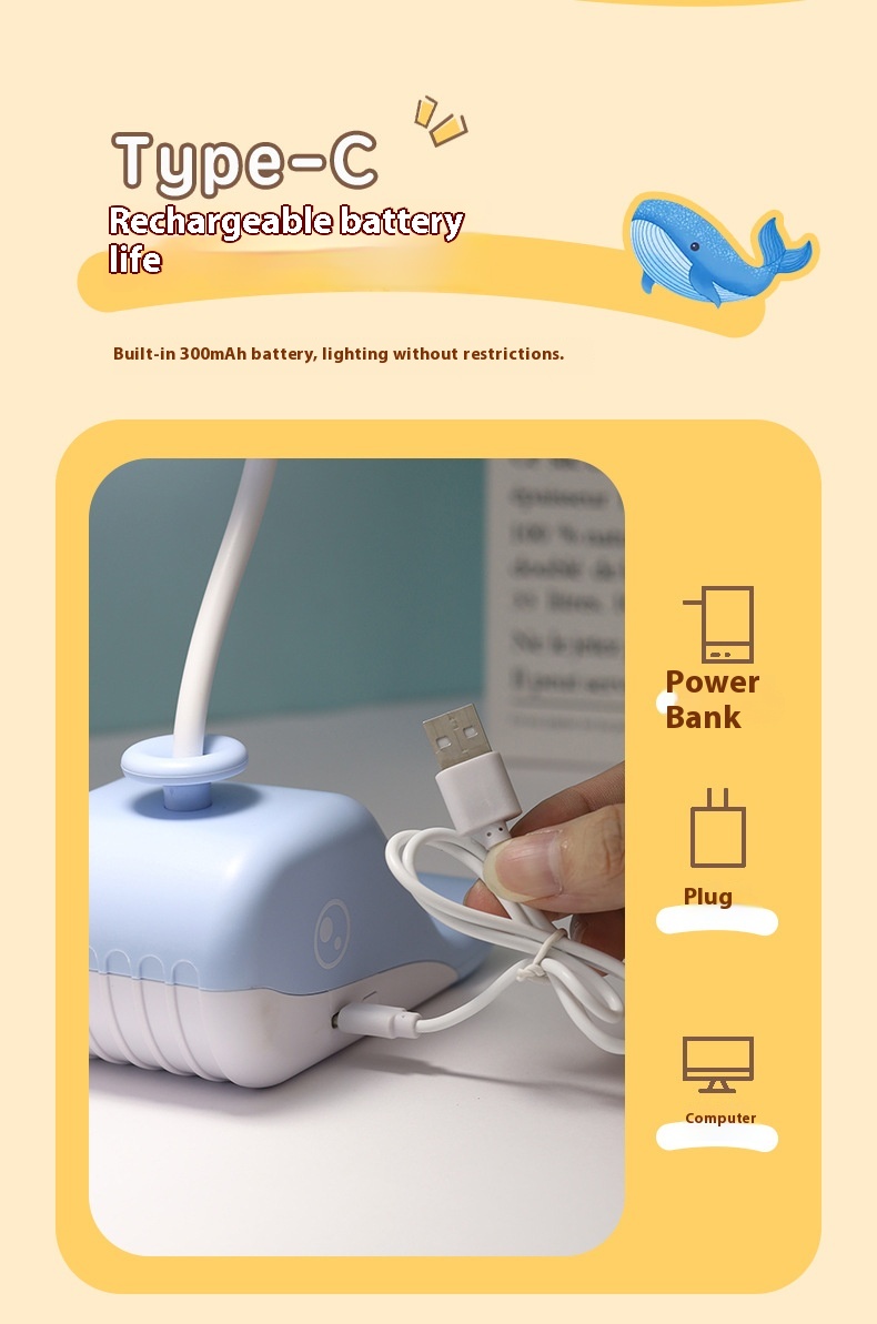 Cute Whale USB Rechargeable Desk Lamp – Portable LED Table Light for Kids & Home Decor