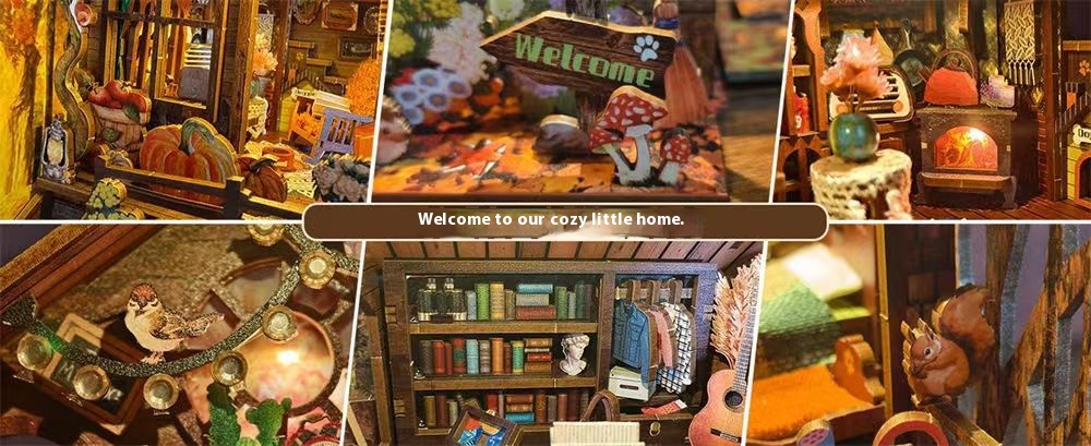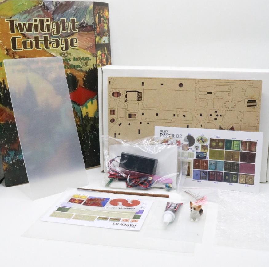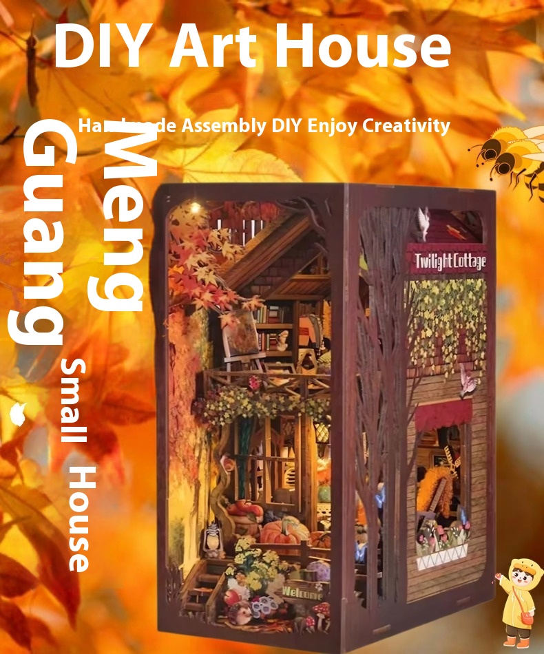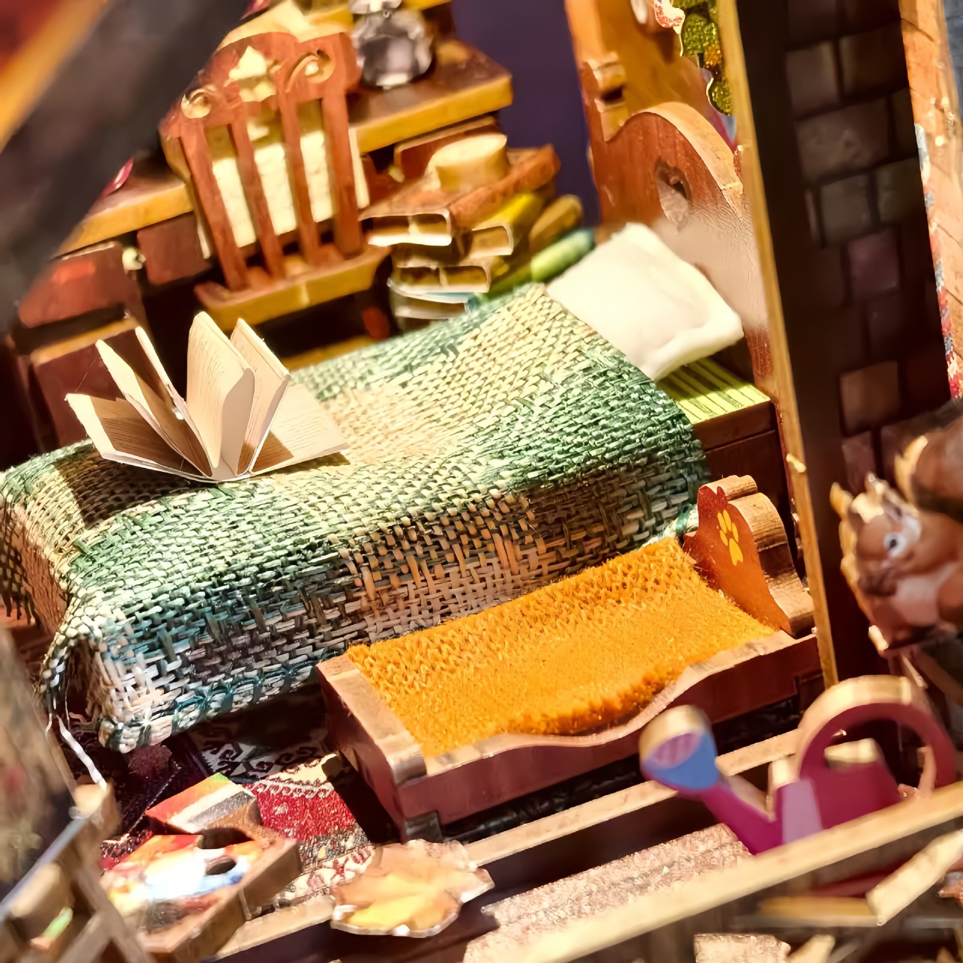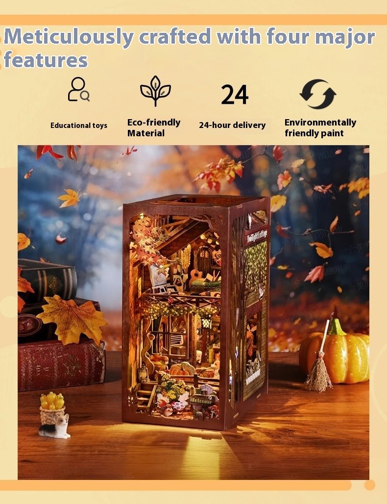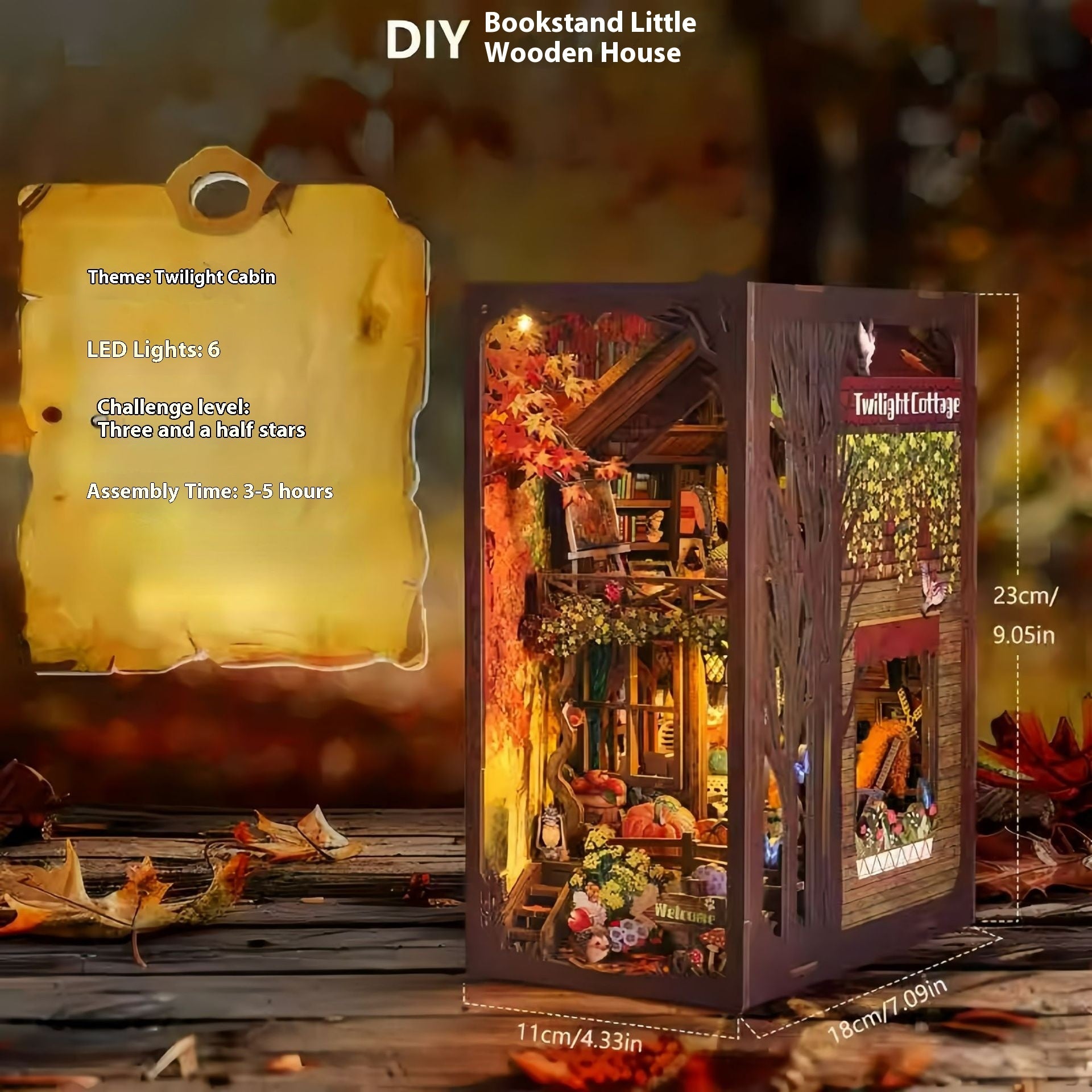DIY Book Nook Kit, Hand-Assembled Wooden Miniature Cottage with Light