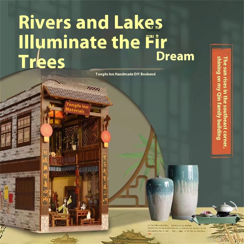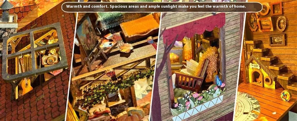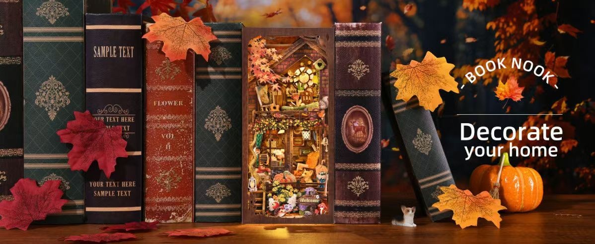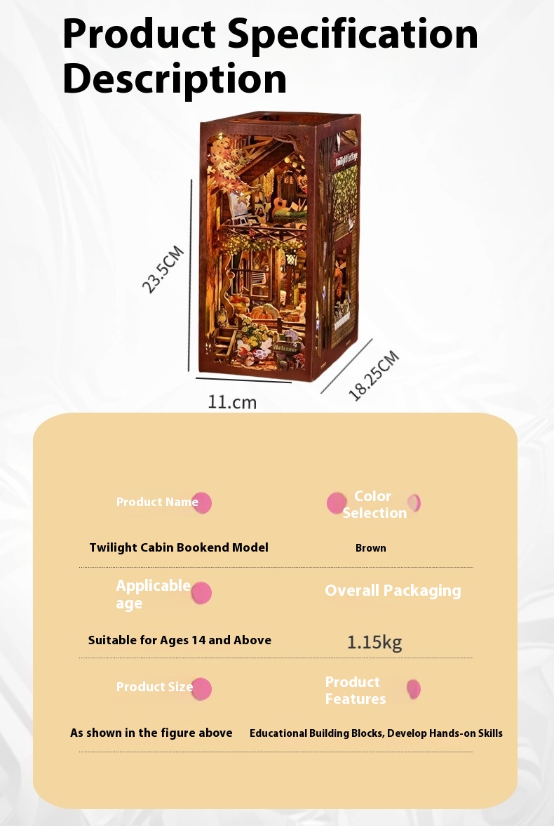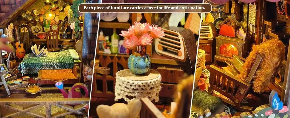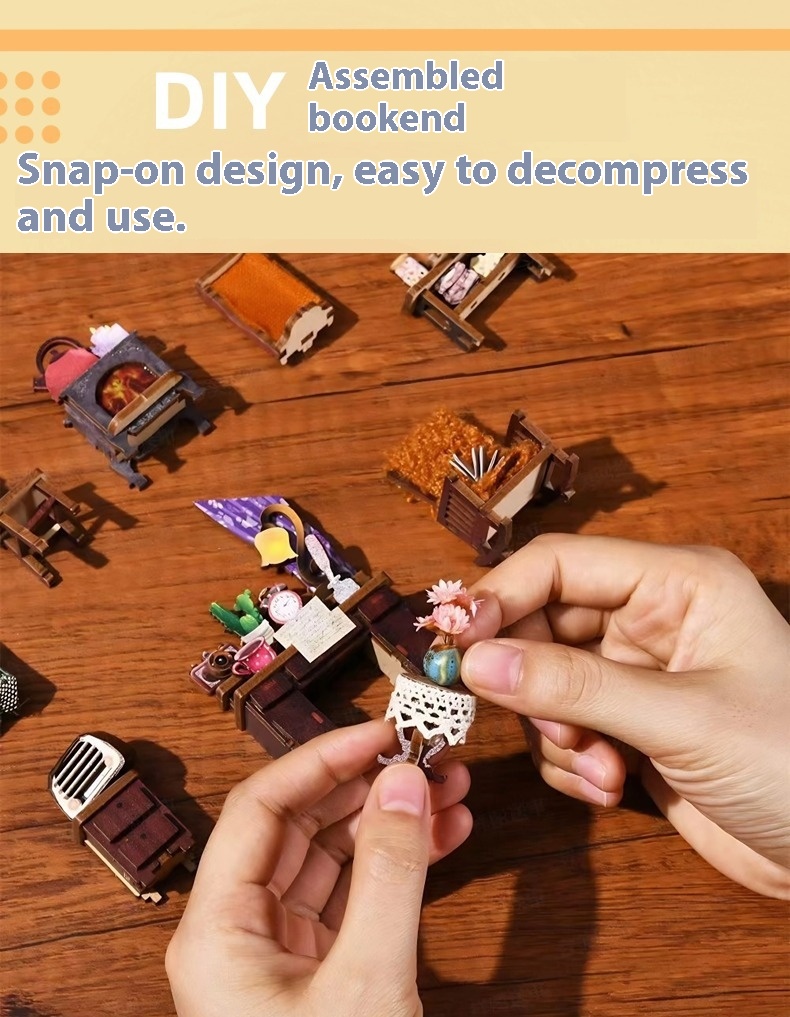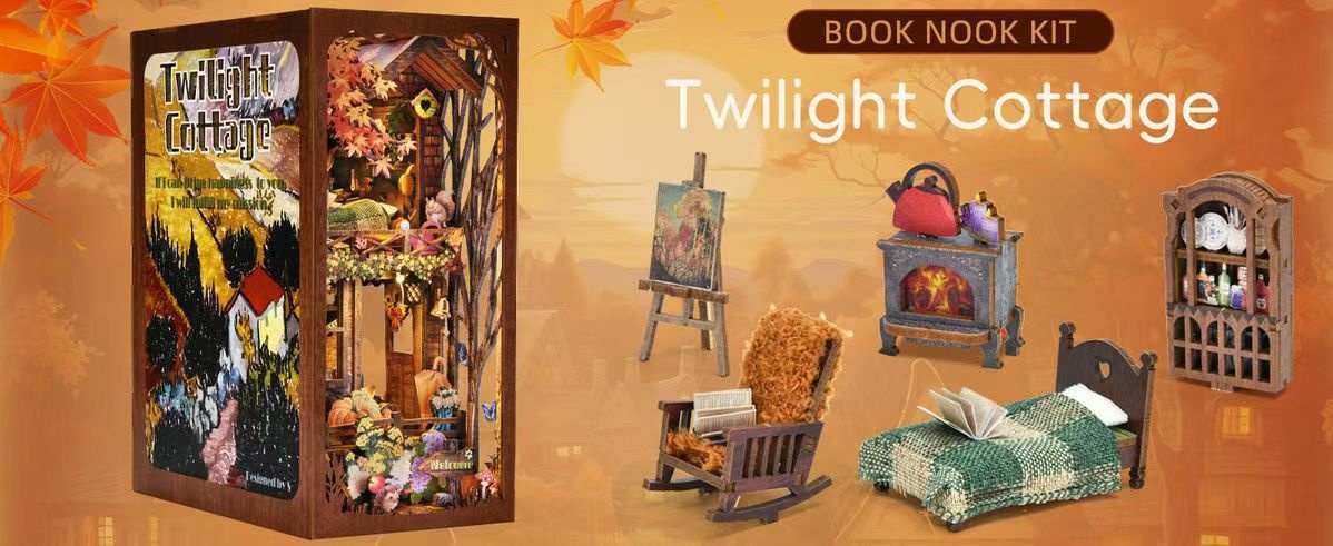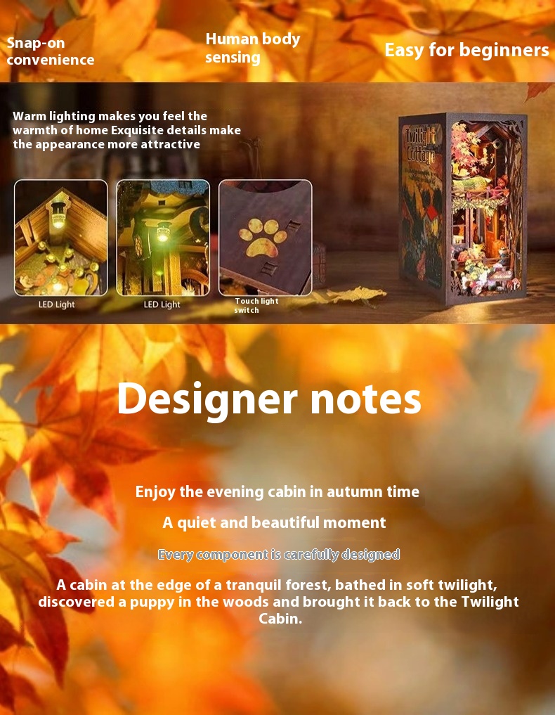 DIY Book Nook Kit, Hand-Assembled Wooden Miniature Cottage with Light