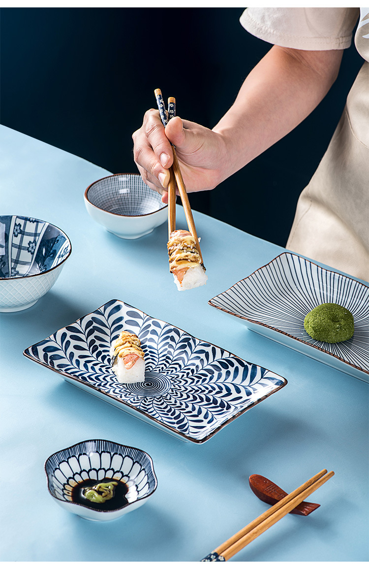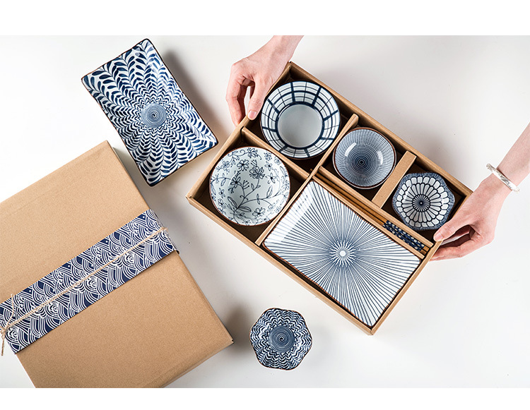 Color: Japanese case 6 bowls 6 plates random pattern,