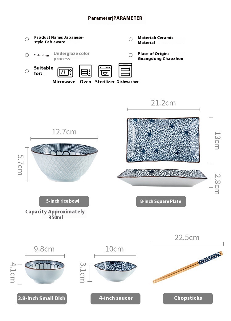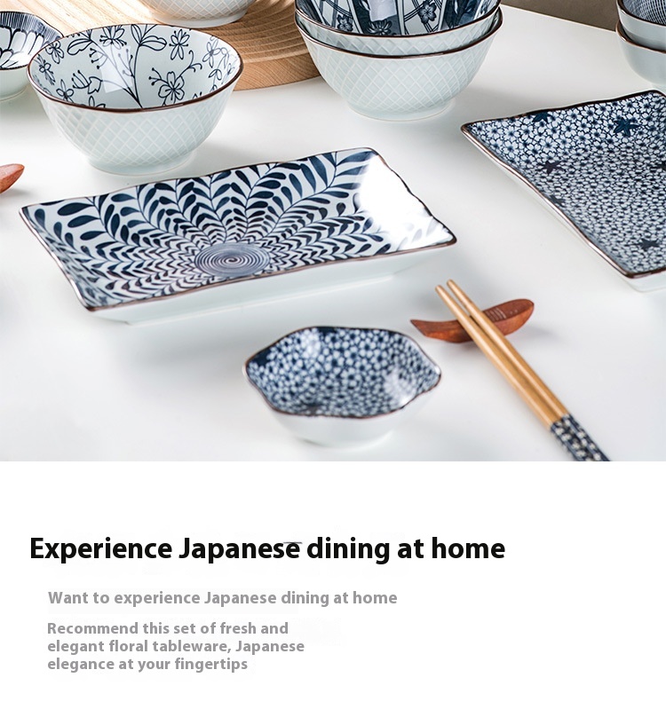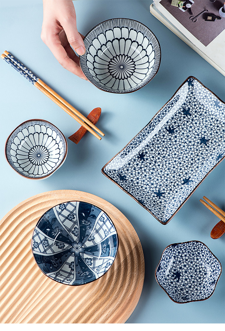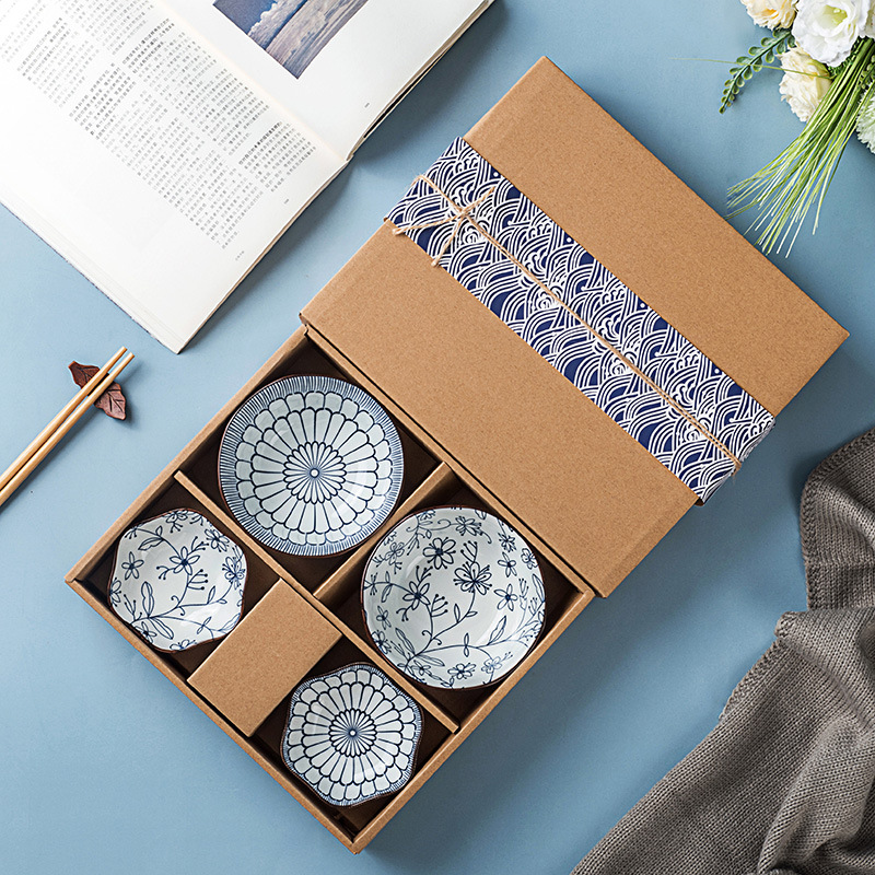 Elegant Blue & White Ceramic Rice Bowl Tableware Gift Set for Dining & Gifting