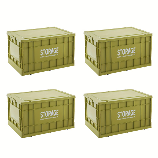 Industrial Style 44L Foldable Storage Box, Stackable Container, Light Green