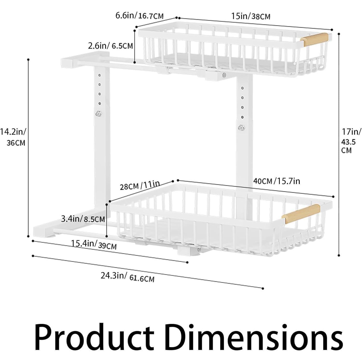 Metal Adjustable Height Two-Tier Drawer Kitchen Bathroom Under Sink Storage Rack