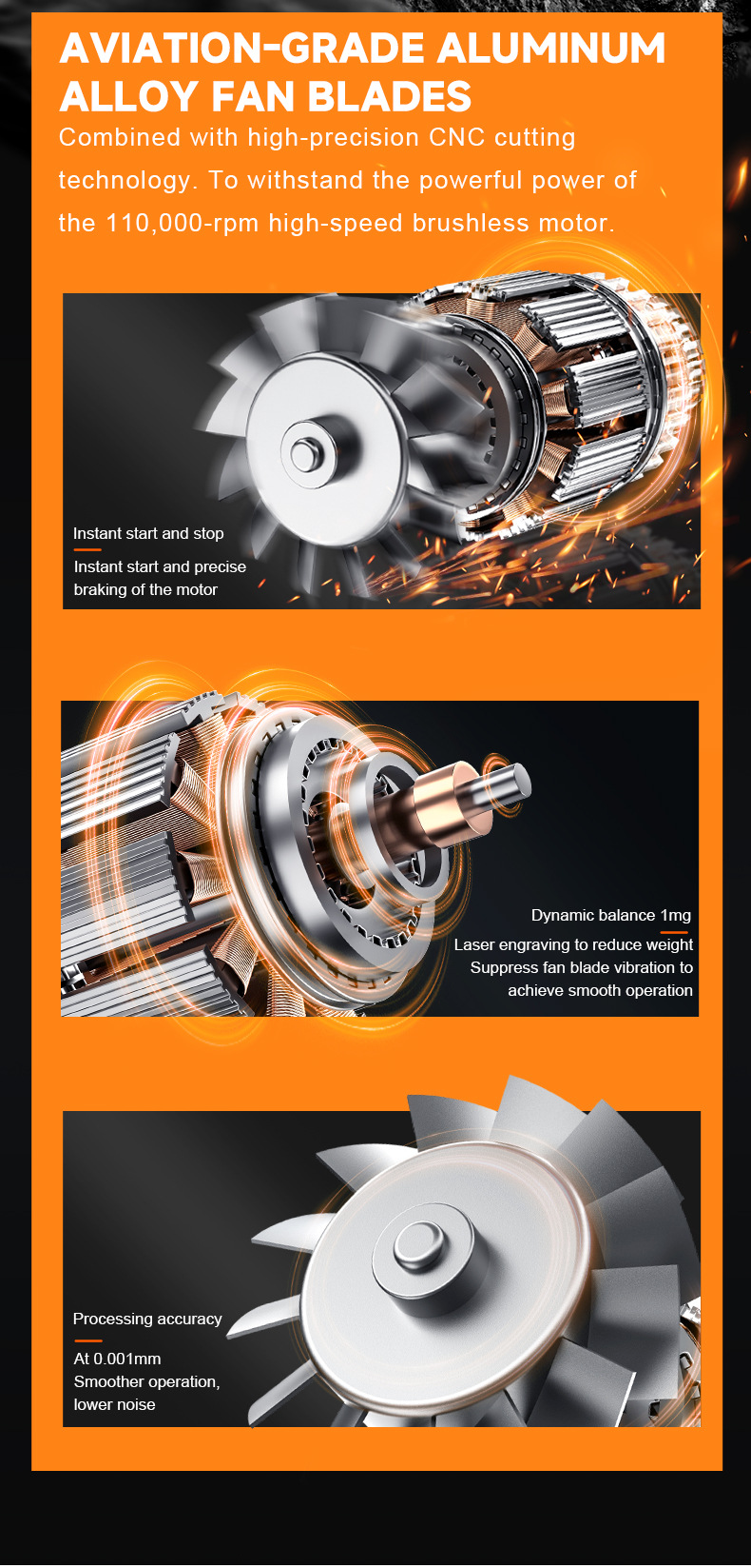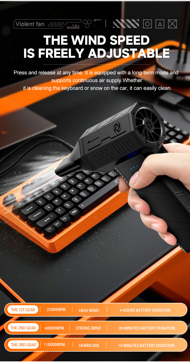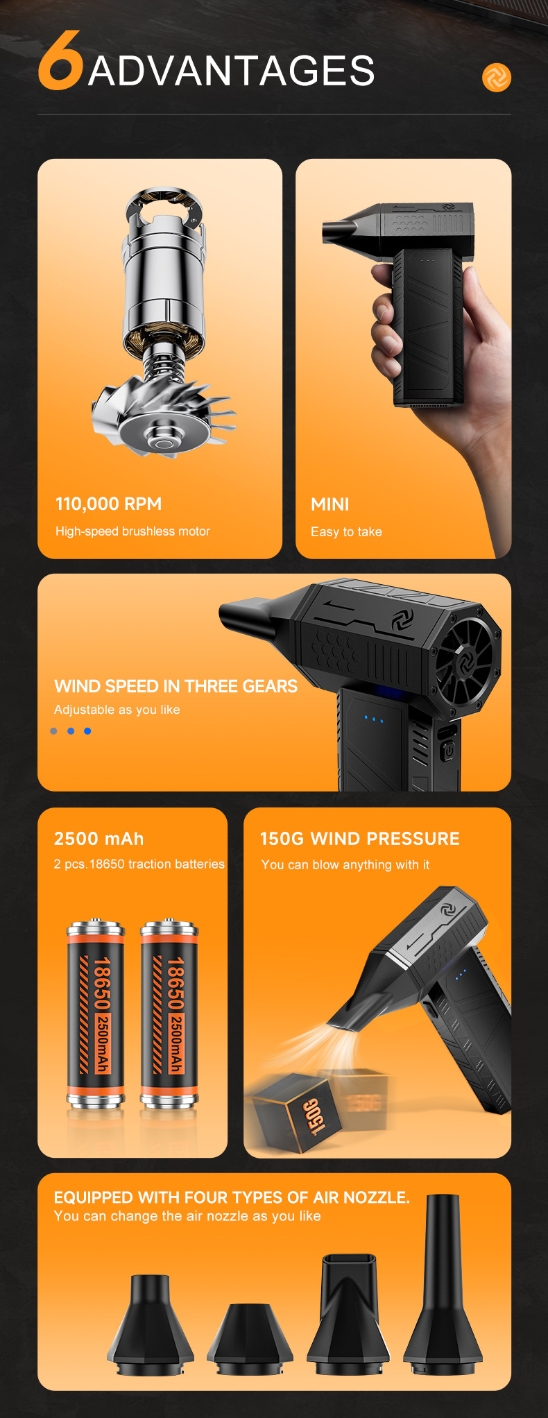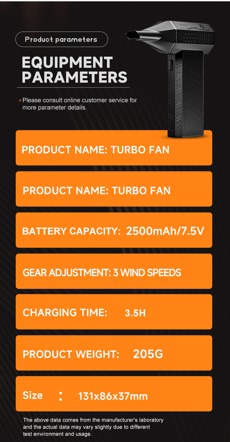 Mini Turbo Fan with 4 Nozzles, High-Speed Brushless Motor & 3 Speeds