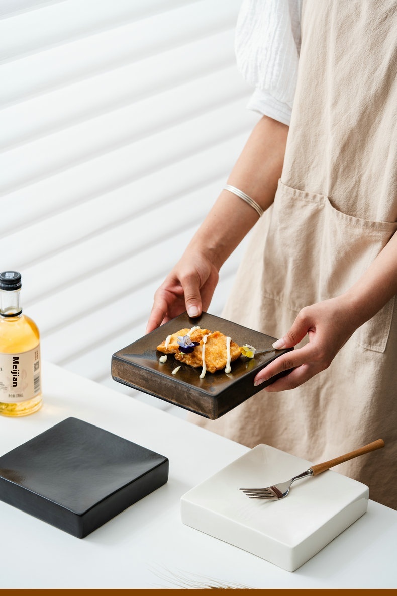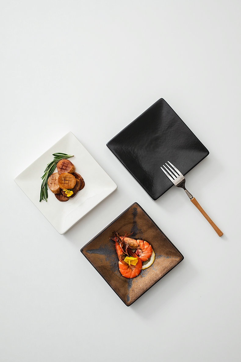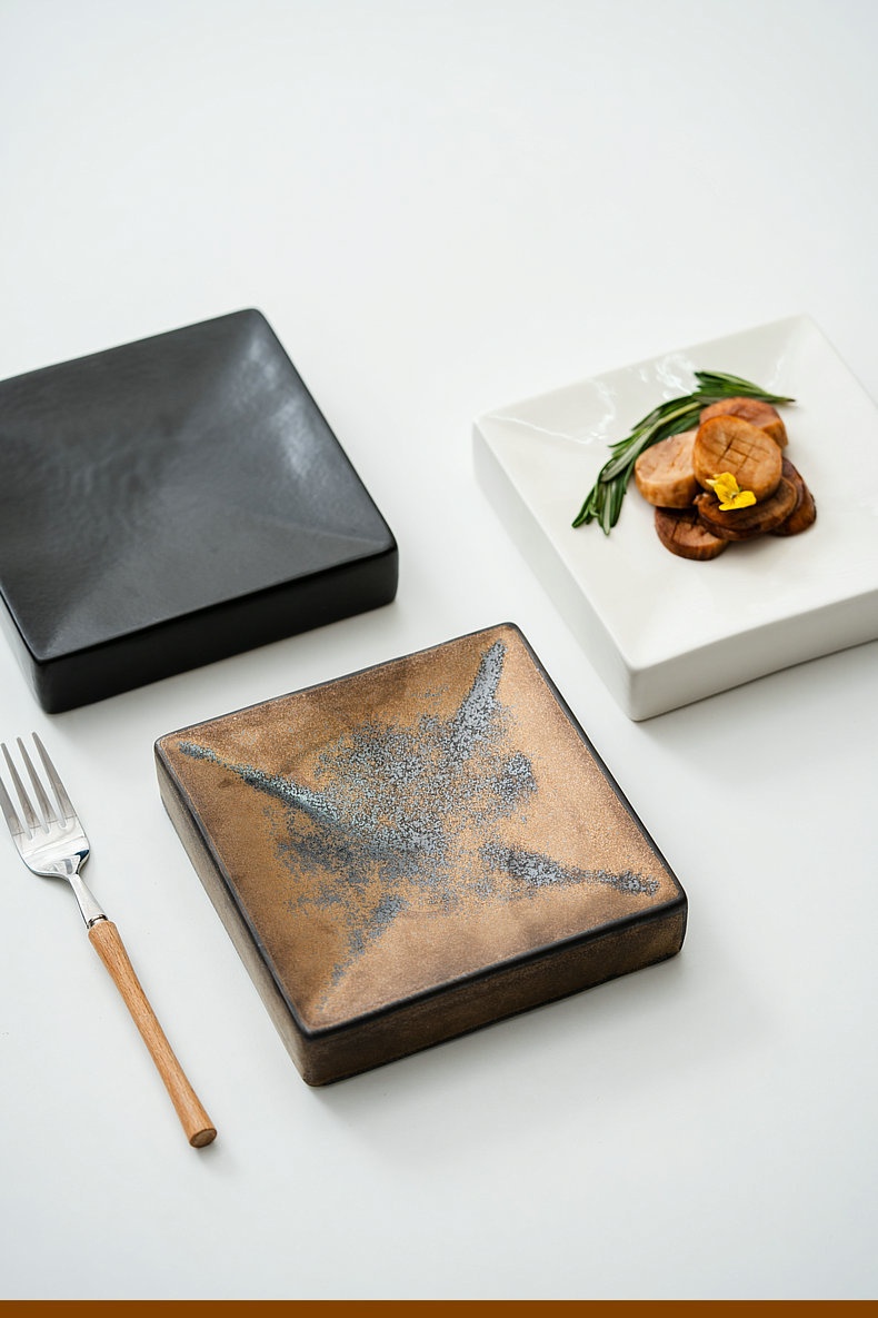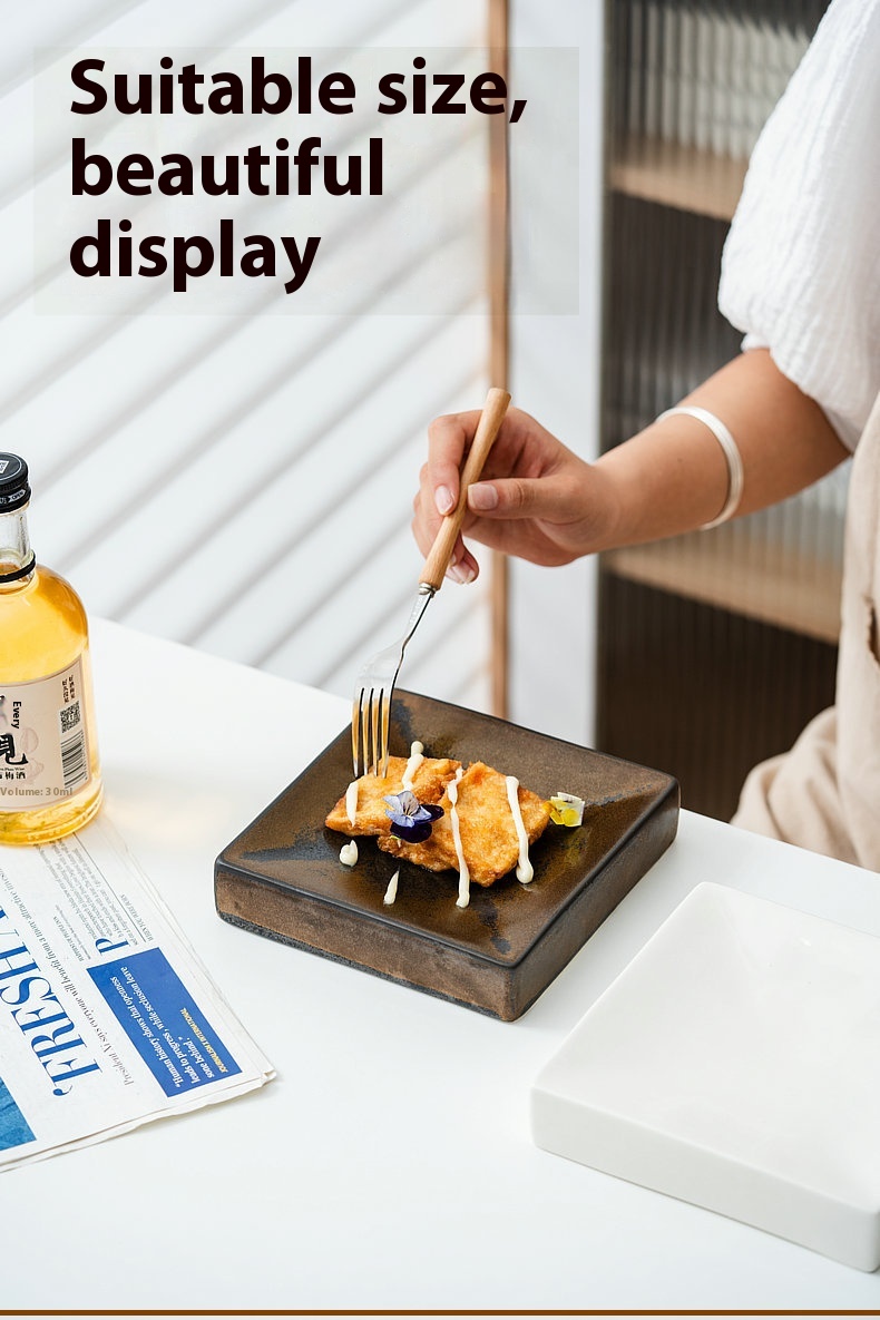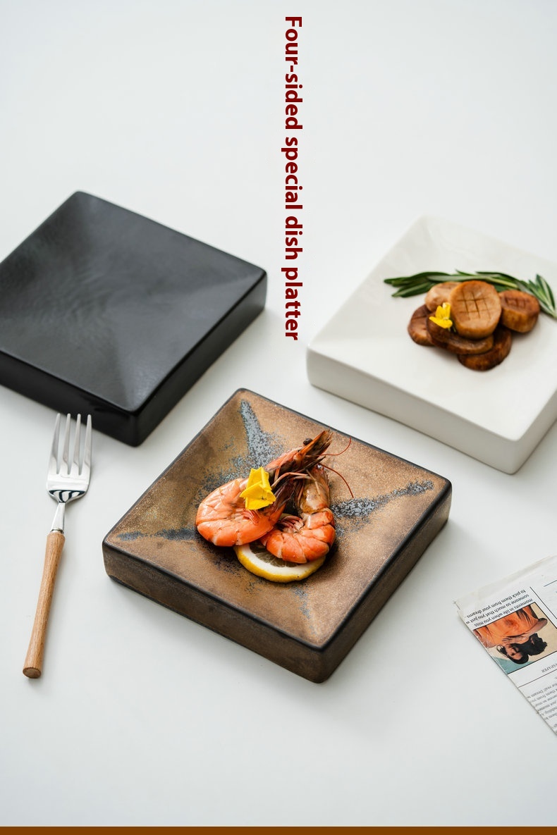 Color: Square specialty plate/black, square specialty plate/Milky White, square specialty plate/gold glaze, square specialty plate/Kiln Roasted Yellow, square specialty plate/Kiln Roasted dark green