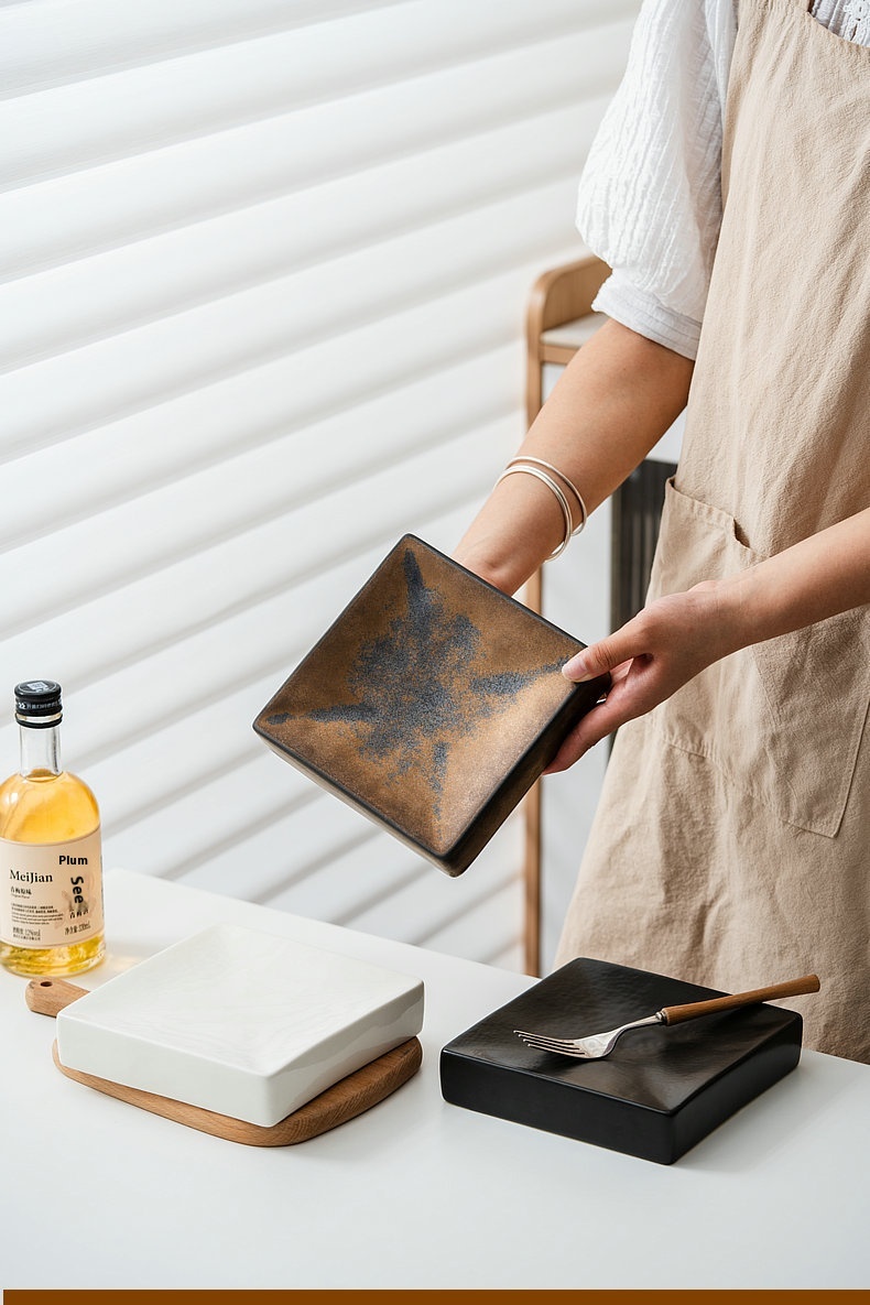 Modern Square Ceramic Plate – Hotel Style Tableware for Cold Dishes & Appetizers
