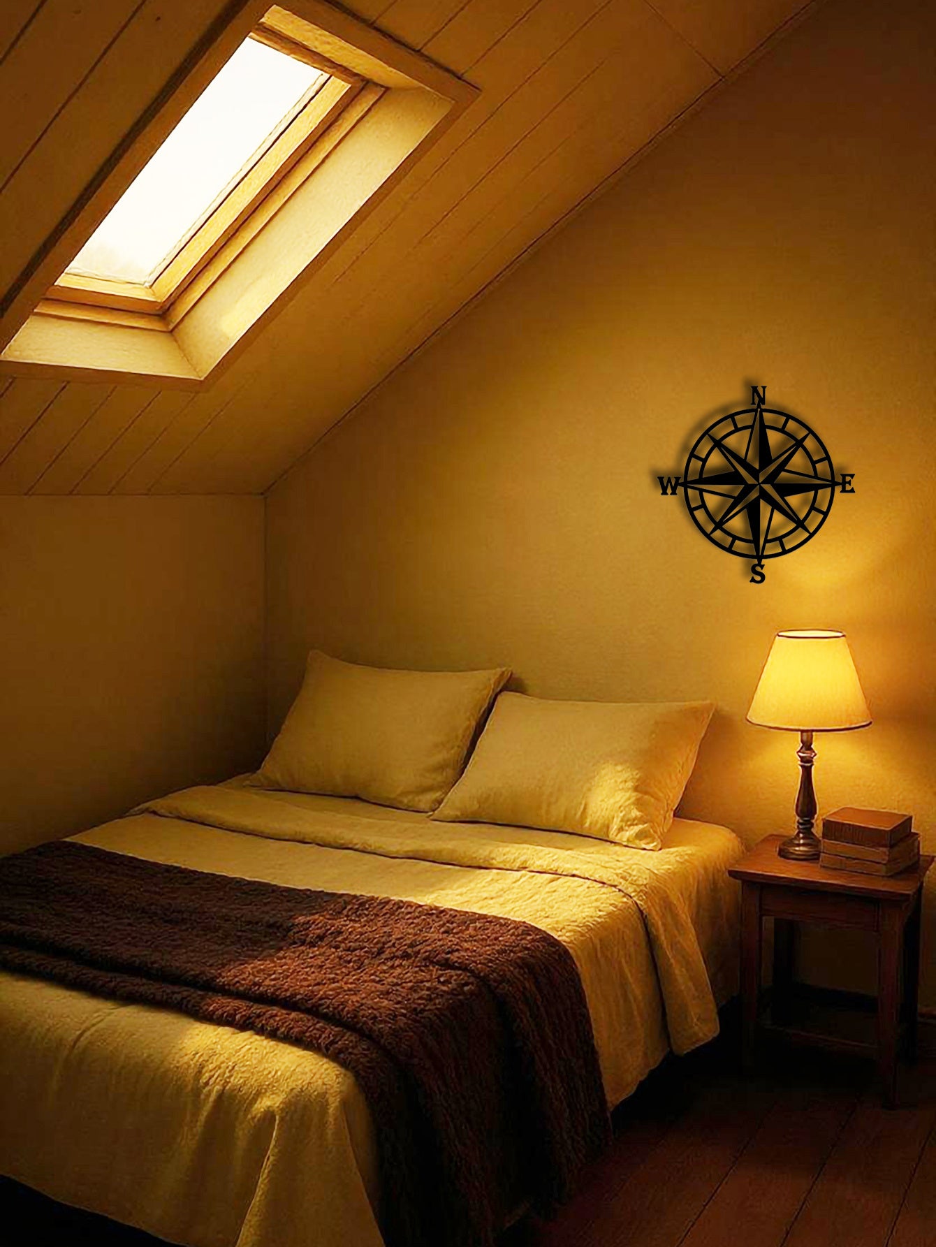 Must-Have For Nautical Lovers: Black Metal Nautical Compass Wall Art - 1PC Iron Art Silhouette | Ideal Ocean Theme Home Decor Wall Sculptures.