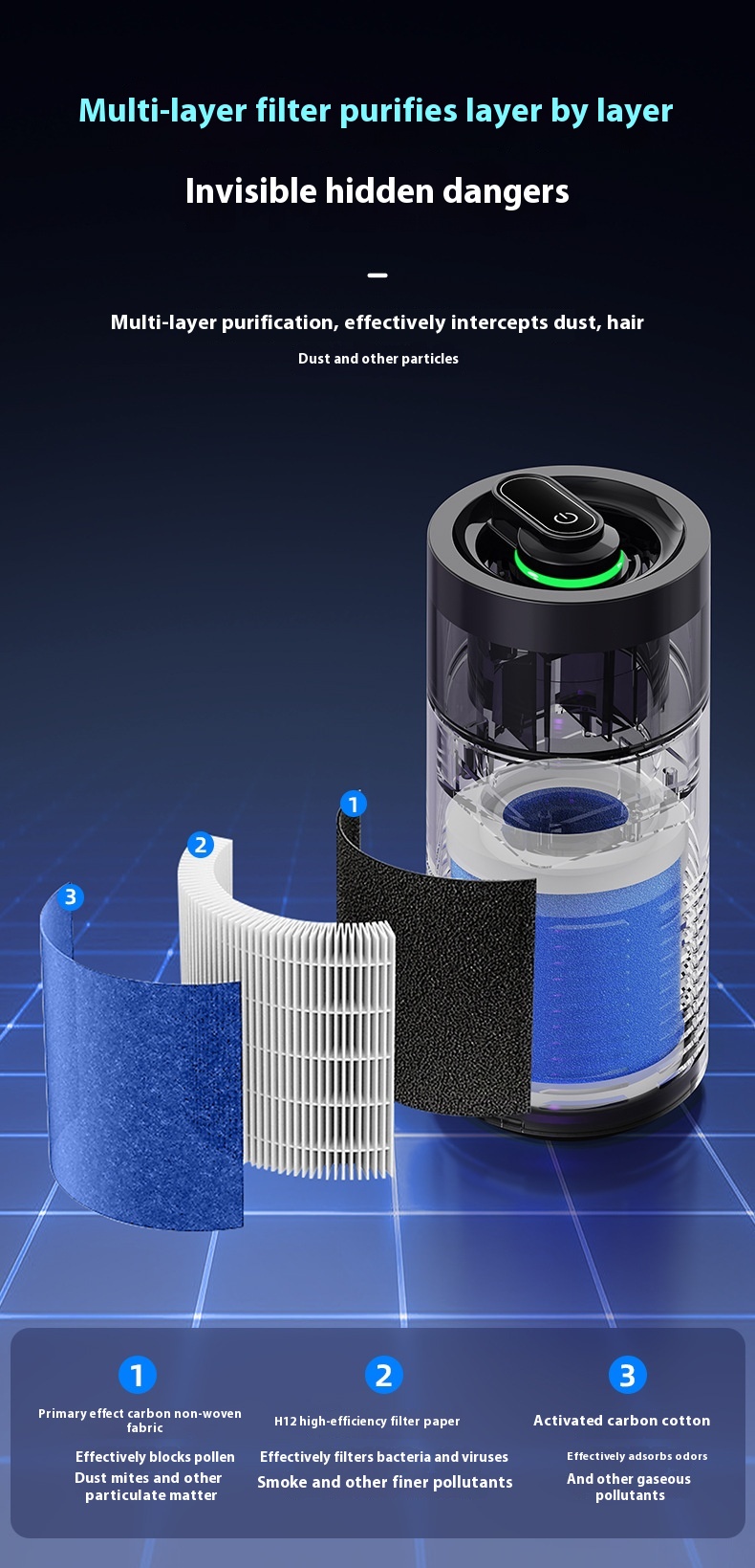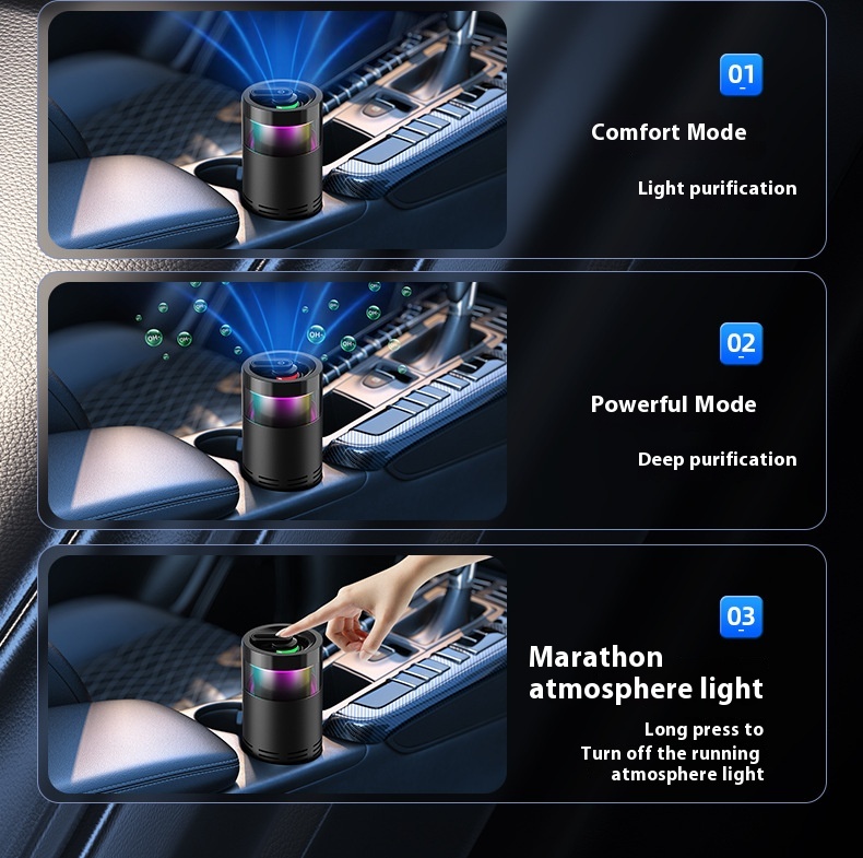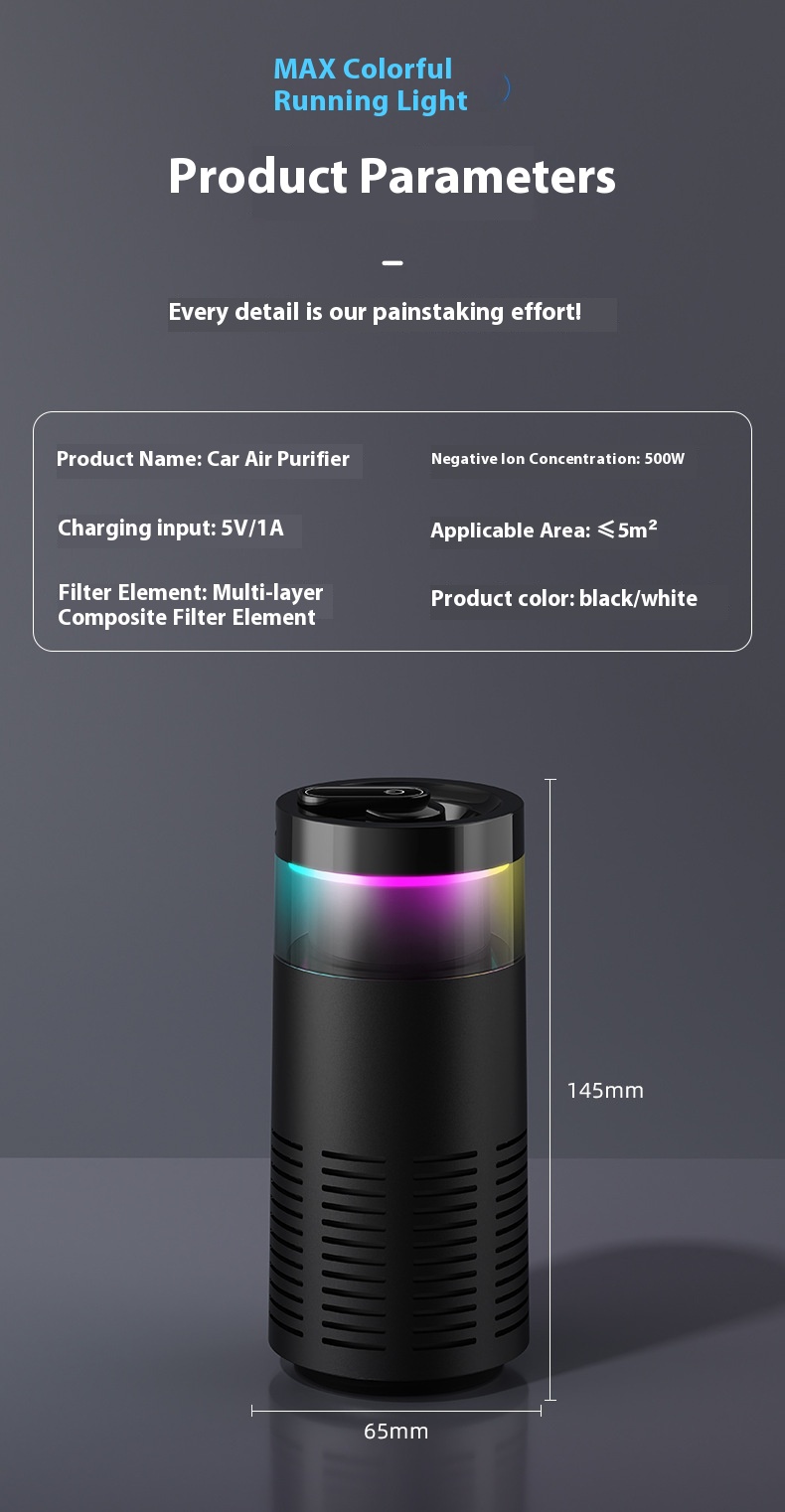 Portable Car & Home Air Purifier with Colorful LED, Formaldehyde & Odor Removal