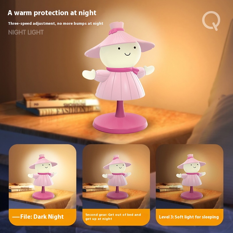 Rechargeable Cartoon Night Light, Dimmable Bedside Lamp for Kids Bedroom & Reading